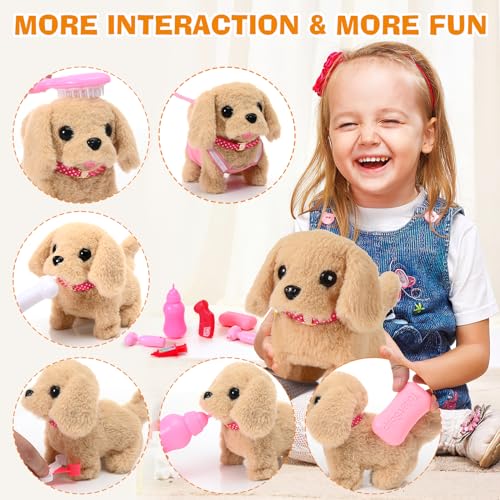 Delight kids aged 3-6 with this 15-piece set of realistic robot puppy toys. They walk and bark, offering interactive pet play. Perfect birthday gifts for boys & girls.