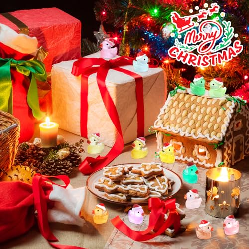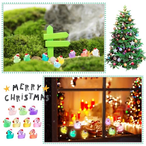 160 pack luminous mini resin ducks. Glow in the dark tiny figurines for garden, dollhouse, DIY crafts & party favors. Perfect for Christmas.