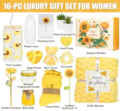 Indulge her with this 17-piece sunflower spa gift set for women. Perfect for birthdays, Mother’s Day, or “get well soon,” promoting relaxation and self-care.