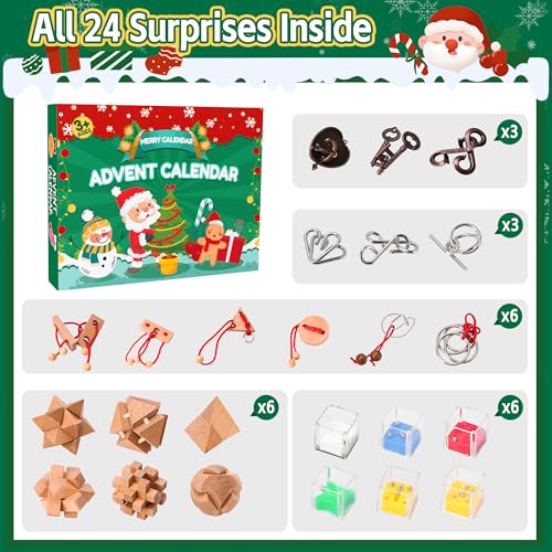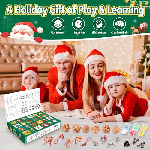 Countdown to Christmas 2025 with 24 days of engaging brain teasers, metal puzzles, wooden games & fidget toys. Perfect for kids & adults, enhancing logic & IQ challenges. The ultimate Christmas gift.