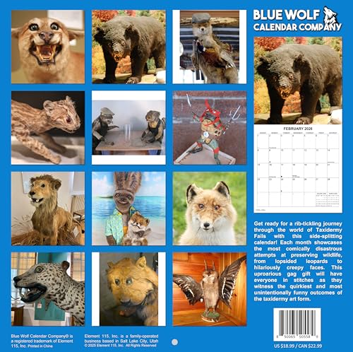 Hilarious 2026 Taxidermy Fails Wall Calendar. A perfect funny gag or prank gift for those who appreciate absurd humor and bad taxidermy.