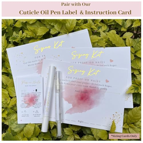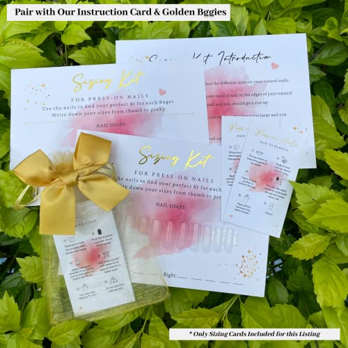 Elevate your press-on nail business or DIY nail art with these luxurious 30-pack Pink Gold Foil Press On Nail Sizing Kit Cards. Each large 5×7 inch postcard provides an empty guide, allowing customers to easily try on and find their perfect false nail size. The elegant pink and gold foil design adds a touch of sophistication, enhancing your brand’s professional image. Essential for artists, entrepreneurs, and anyone selling or creating custom press-on nails, these sizing charts ensure accuracy, reduce returns, and boost customer satisfaction, making the sizing process simple and chic.