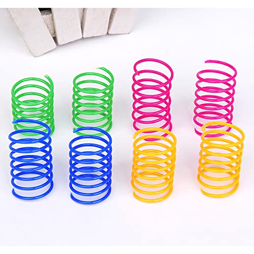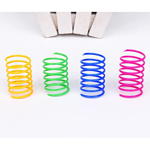 AIMICOCA 40-pack colorful plastic coil cat spring toys for indoor cats. Interactive and fun for swatting, biting, hunting, promoting active healthy fitness play.
