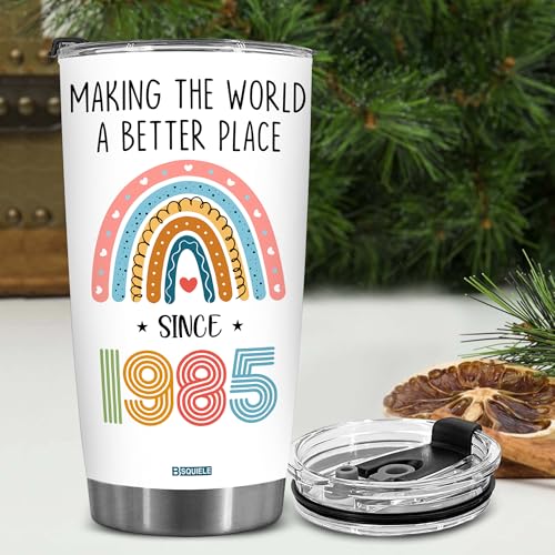 Celebrate a 40th birthday with this funny “Making The World Since 1985” 20oz tumbler. Perfect gift for men or women turning 40, party decorations.