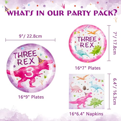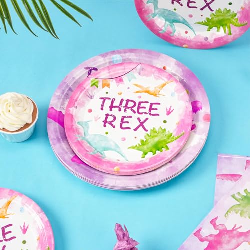 48pc Three Rex Pink Dinosaur 3rd Birthday Tableware (Serves 16)