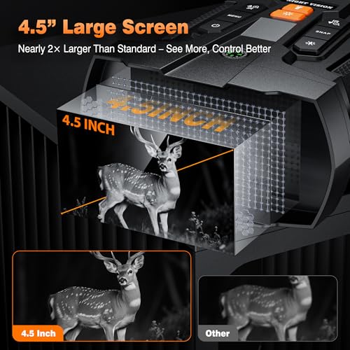 Experience clear night vision with 4K goggles. Features a 4.5″ HD screen, 5000mAh battery. Ideal for outdoor exploration, camping, and hunting. Perfect gift for men.