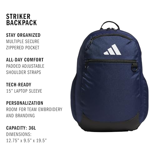 adidas Striker Team Sports Backpack (36L). Ideal for soccer, gym, & workouts. Durable and versatile bag for men & women.