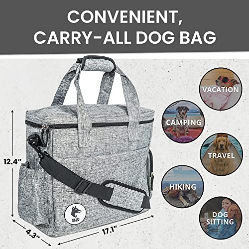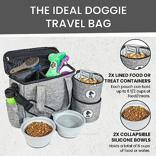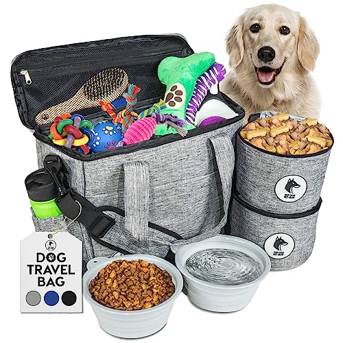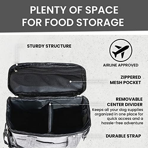Airline-approved dog travel bag & supply organizer. Includes foldable bowls & food containers. Perfect pet travel backpack for adventures.