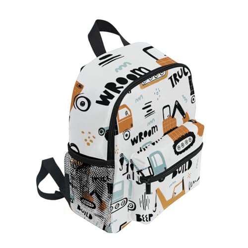 Cute ALAZA toddler backpack with funny construction transport cars design. Ideal kindergarten, daycare, and preschool bag for boys & girls.