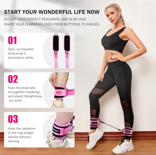 Enhance your leg and glute workouts with these pink ankle resistance bands and cuffs. Ideal for cable machines, kickbacks, and abductors at gym or home.