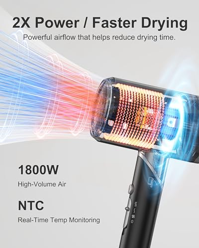 - Fast 1800W drying for quick and efficient styling.