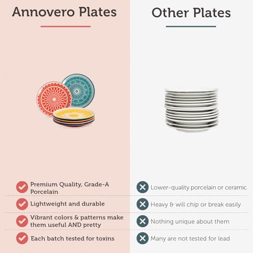 Annovero 6″ Porcelain Dessert Plates – Set of 6 Colorful