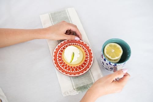 Add a splash of color to your table with the Annovero Set of 6 Dessert Plates. These small, 6-inch porcelain plates are perfectly sized for appetizers, cakes, snacks, pies, or cocktails. Crafted from high-quality porcelain, they are microwavable for convenience and proudly free of lead and cadmium, ensuring safe use. Their decorative, colorful design makes them an ideal addition to any kitchen or dining setting, combining functionality with aesthetic appeal for everyday use or special occasions.