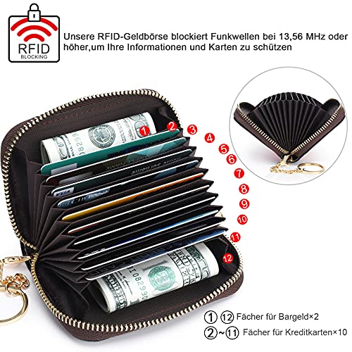 The APHISON RFID Credit Card Holder Wallet for Women combines elegance with advanced security. Crafted from high-quality leather, this slim zipper card case offers ample storage for your credit cards, ID, and some cash. Its built-in RFID blocking technology ensures your personal information is safe from unauthorized scans, making it an ideal accessory for everyday use and travel. Perfect for ladies who value both style and security in their accessories.