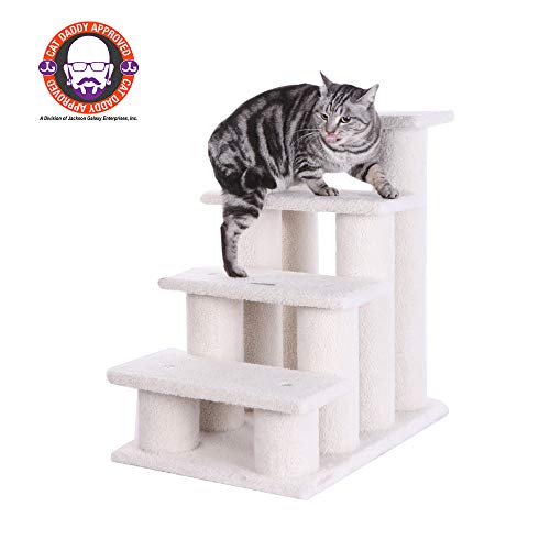 Ivory Armarkat 4-step pet stairs assist pets with reaching high places. Durable, plush carpeted steps for small dogs, elderly pets, and cats. Easy to assemble.
