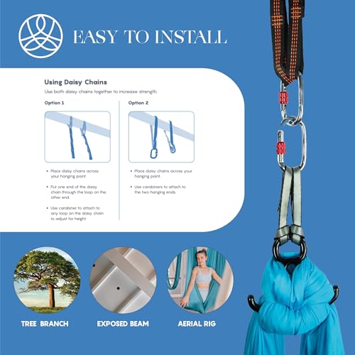 Elevate your fitness routine with the Aum Active Aerial Silks Starter Kit. This comprehensive kit includes a durable 9-yard aerial yoga hammock, all necessary hardware for secure installation, and a user-friendly guide. Designed for acrobatic flying yoga, it supports practitioners of all levels, from beginners to experienced aerialists. Enjoy improved flexibility, strength, and core stability while having fun. Suitable for rigging points up to 13ft, transforming any space into an aerial studio.