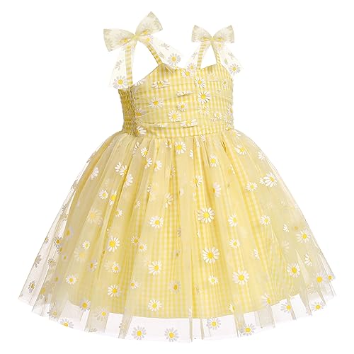 Celebrate her special day with this enchanting Baby Girls 1st Birthday Outfit. This sleeveless yellow daisy print tulle tutu dress, designed for 12-18 months, features delicate spaghetti straps and charming bowknot decor. It’s the perfect princess party dress for her first birthday celebration, cake smash photoshoot, or any memorable event. Crafted for comfort and cuteness, this outfit will make your little one sparkle and shine, creating unforgettable memories and adorable photographs.