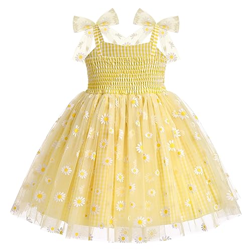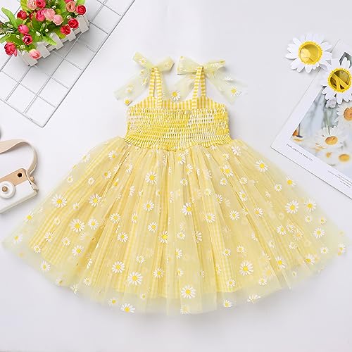 Adorable baby girls’ 1st birthday yellow daisy print tulle tutu dress (12-18 months). Perfect for parties, cake smash, & photoshoots. Princess style!