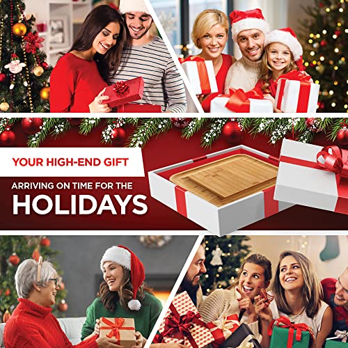 Present the perfect Charcuterie Board Gift Set, featuring a high-quality bamboo cheese board and a complete knife set. This elegant and practical set is an exceptional choice for various occasions, including housewarming gifts for a new home, thoughtful wedding gifts for couples, cherished bridal shower gifts, or special birthday gifts for women. Crafted from sustainable bamboo, it offers a beautiful and functional centerpiece for any gathering. Elevate your gifting and entertaining with this versatile and eco-friendly charcuterie board.