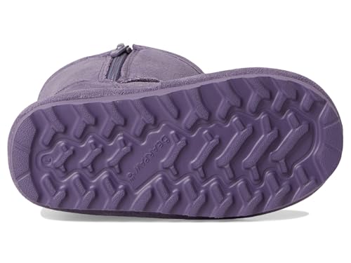 The Bearpaw Girls’ Elle Zipper Ankle Boot in Purple Sage is designed for comfort and ease for toddlers and little kids. Crafted with a soft suede upper and lined with a cozy wool blend, these boots provide exceptional warmth during colder months. The convenient side zipper allows for quick and easy on-and-off, perfect for busy little ones. A durable outsole ensures good traction for all their adventures, making them a practical and stylish choice.