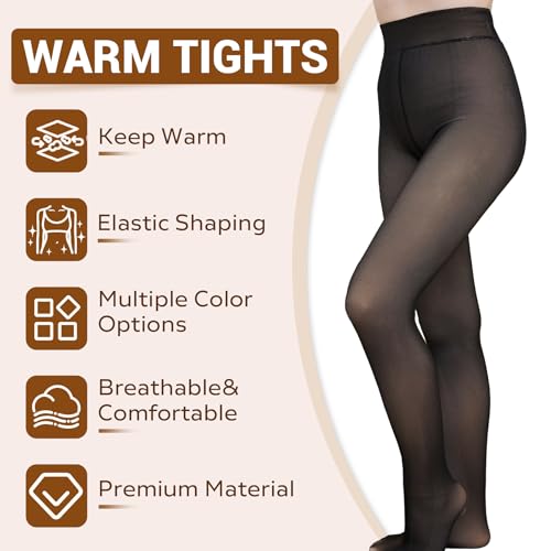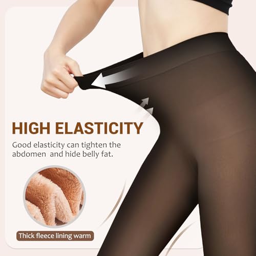 Stay cozy and chic with Welvgnnce black fleece lined tights. These fake translucent warm pantyhose offer a sheer look while providing ultimate winter warmth.