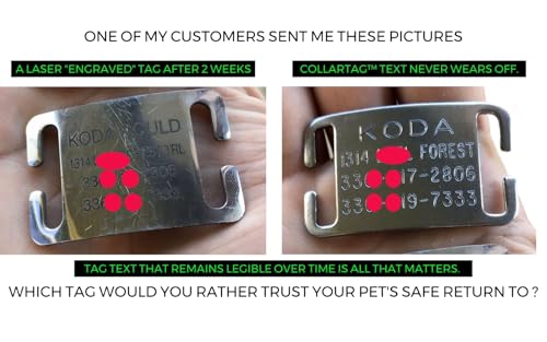 • Lifetime Durability: Engraved stainless steel designed to last for your pet’s life.