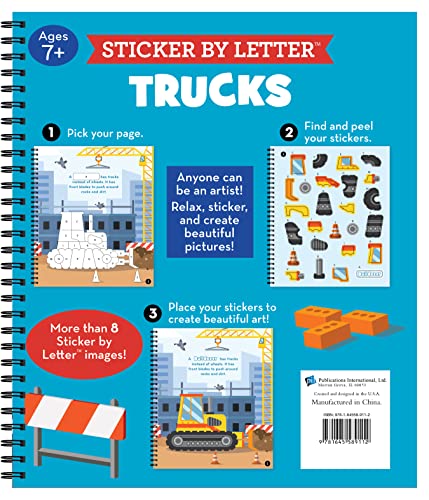 Engage your mind with Sticker by Letter: Trucks. A relaxing and fun puzzle book for all ages, perfect for brain training and creativity.