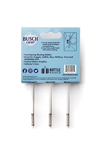 Hook the perfect catch with Southern Bell Brands’ official licensed Busch Light beer bottle fishing bobbers. This unique 3-pack brings novelty and functionality to any fishing trip. Designed to mimic iconic beer bottles, these floats are perfect for bass, trout, and other freshwater fishing. They make an excellent Christmas gift, Father’s Day present, or birthday surprise for any dad, angler, or fishing enthusiast who appreciates a good beer and a great catch. Add a touch of humor and personality to your tackle box with these durable, eye-catching floats.