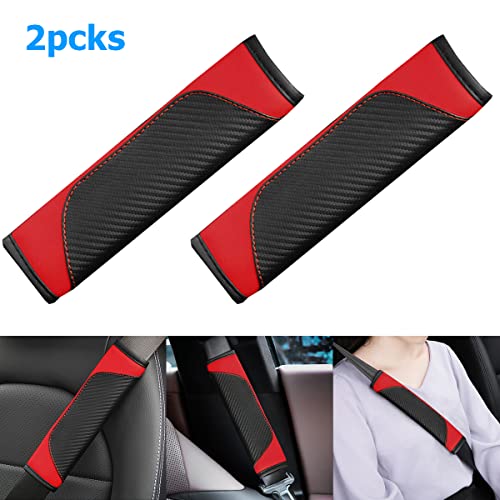 Enhance driving comfort with 2PCS carbon fiber seatbelt shoulder strap covers. Breathable leather soft harness pads protect neck & shoulder.