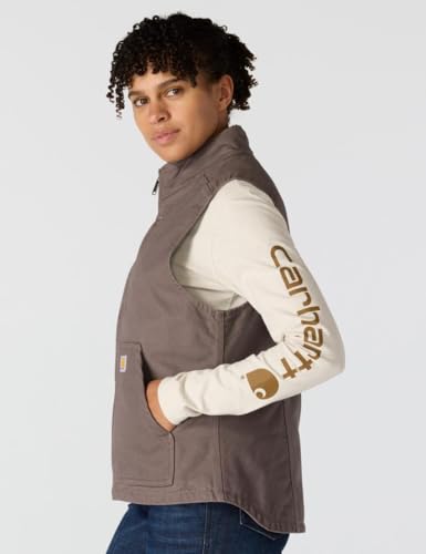 Stay warm in style with Carhartt’s Women’s Relaxed Fit Washed Duck Vest. Sherpa-lined for comfort, mock-neck for extra warmth. Perfect for work or casual wear.