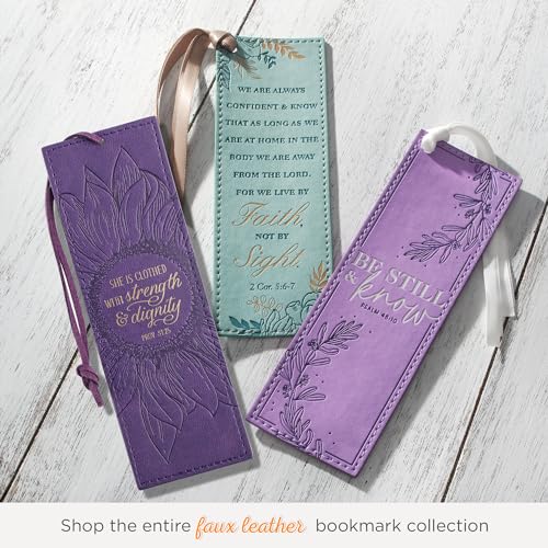 Inspire her daily with this beautiful vegan leather scripture bookmark. Featuring the empowering words “Strength and Dignity – Proverbs 31:25” heat-debossed, this faith-based accessory is designed for women. The elegant purple sunflower design and coordinating tassel add a touch of grace to any book. Ideal for personal use, Bible study, or as a thoughtful gift for Christian women who cherish their faith and enjoy reading.