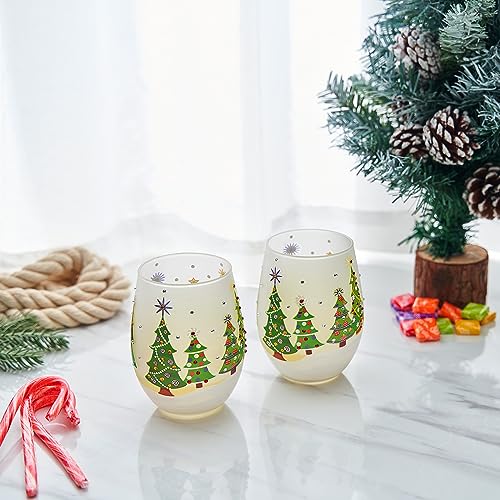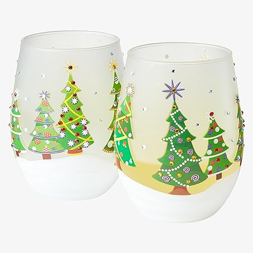 Christmas Tree Holiday Stemless Wine & Water Glasses (Set of 2)