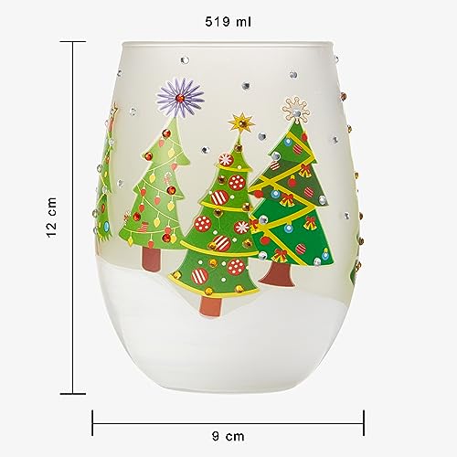 Celebrate the festive season with this charming set of two stemless wine and water glasses. Each 17.5oz glass features a vibrant, shining Christmas tree design in red, green, yellow, and silver, bringing holiday cheer to any occasion. Ideal for serving your favorite wines, water, or festive cocktails during Christmas parties, New Year’s Eve gatherings, or as a delightful Santa gift. Durable and perfect for making your holiday toasts memorable.