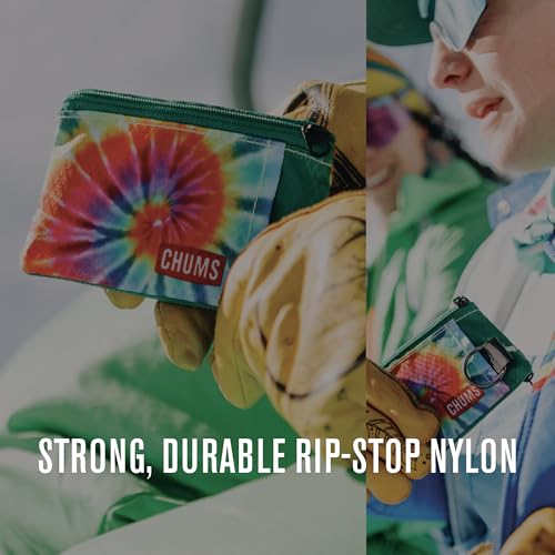 Lightweight Chums Surfshorts Wallet with RFID blocking, clear ID window, and key ring. Zippered and water-resistant, perfect for active lifestyles. Terrazzo design.
