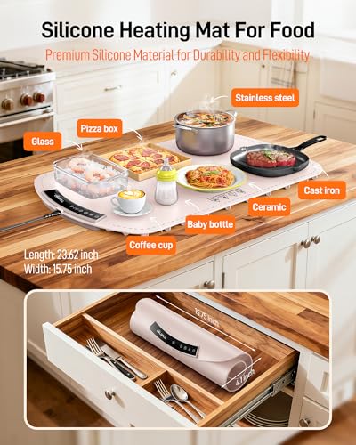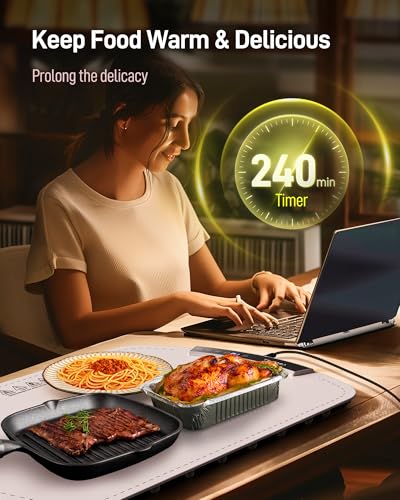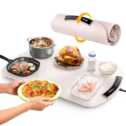 The COLDFILL Electric Food Warming Mat ensures your meals stay perfectly warm for any occasion. This innovative silicone mat offers 8 adjustable temperature levels and a convenient 4-hour timer, giving you precise control. Its rollable 24″x16″ design makes it incredibly portable and easy to store, ideal for buffets, family gatherings, parties, or daily home use. Crafted from food-grade silicone, it’s safe, durable, and easy to clean. Enjoy warm, delicious food without the hassle of traditional bulky warming trays.