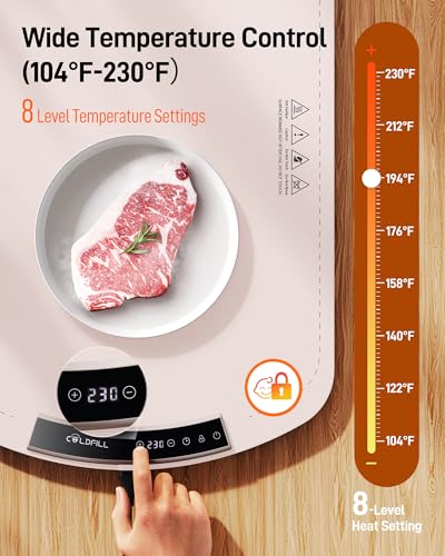 COLDFILL Electric Food Warming Mat – 8 Temps & Timer, Pink