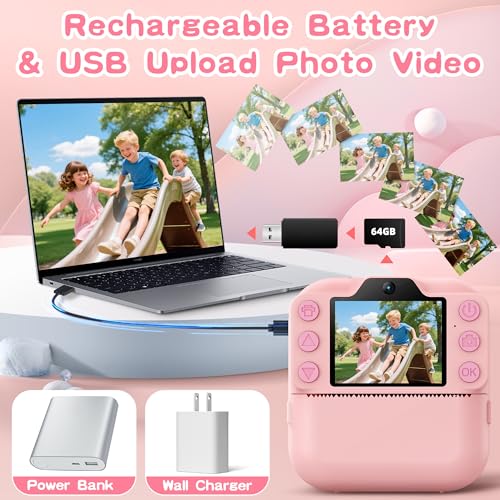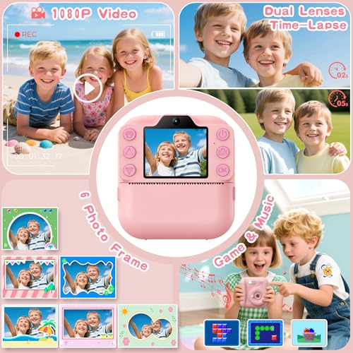 Coxlame Instant Print Kids Camera – 64GB, Pink (Ages 3-12)