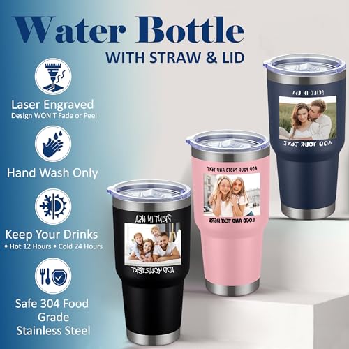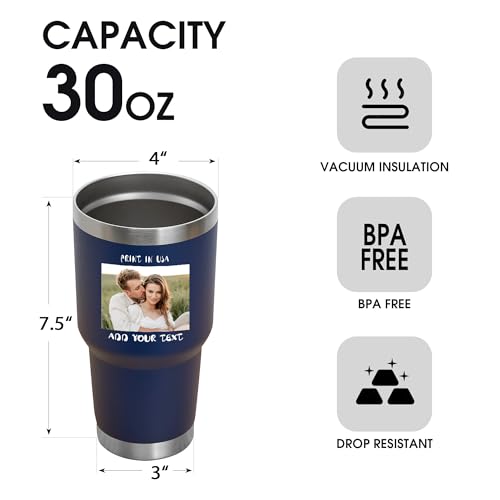 Personalize your own 30oz insulated stainless steel tumbler with custom images, text, or logos. Ideal for women, travel, and holiday gifts.