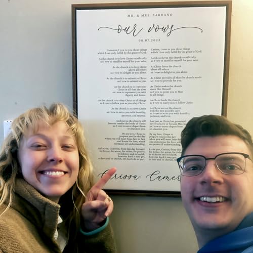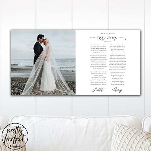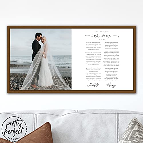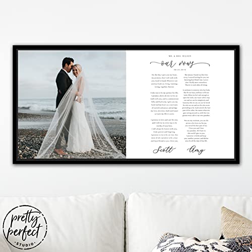 Preserve your cherished wedding vows forever with this exquisite Custom Wedding Vows Wall Art from Pretty Perfect Studio. This framed canvas art allows you to display your personalized vows, creating a unique and sentimental keepsake for husband and wife. Ideal for celebrating anniversaries, renewing vows, or as a timeless wedding day gift, this piece beautifully captures the essence of your commitment.