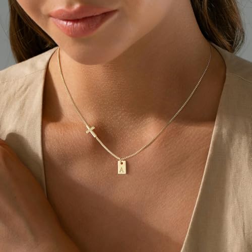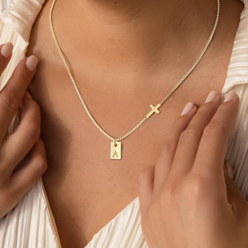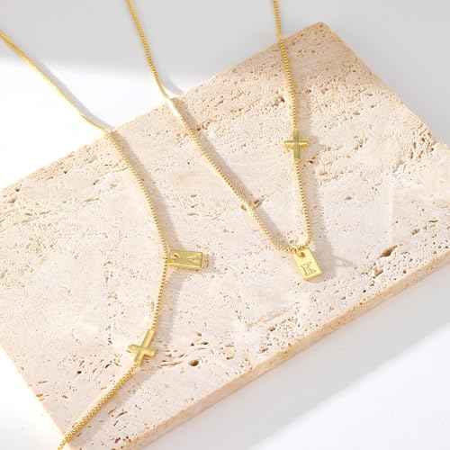 Discover our beautifully crafted dainty initial cross necklace, made with 14K gold plating. This elegant piece features a delicate cross pendant with an initial charm on a sturdy box chain choker. Ideal for women seeking a blend of faith and fashion, it’s perfect for everyday wear, baptisms, confirmations, or as a thoughtful religious gift. Its timeless design ensures it complements any outfit, symbolizing faith with a touch of personal elegance.
