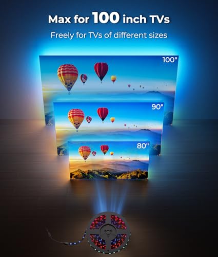 DecTok 15ft RGB LED backlight for 55-75 inch TVs & monitors. Syncs to screen for immersive gaming, movies, and music. Smart app control, cuttable, enhances home decor.