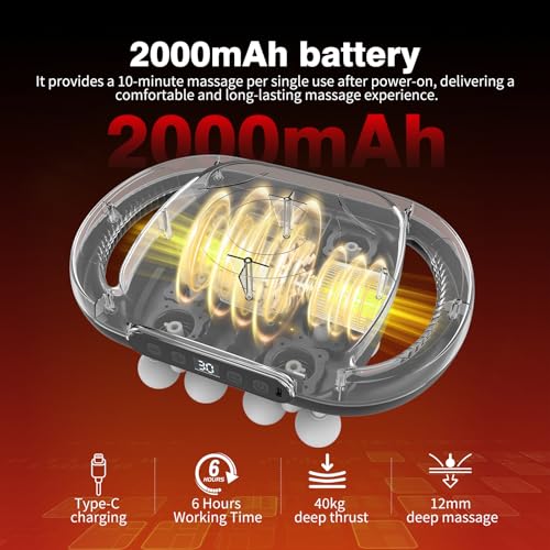 The battery life varies based on speed settings, but typically provides several hours of use, ensuring long-lasting relief.