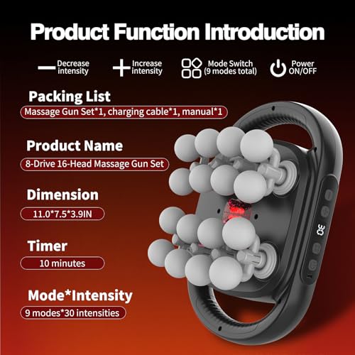 Unleash powerful muscle relief with the HuixinLine 16 Head Deep Tissue Massage Gun. Designed for comprehensive muscle relaxation, this portable massager targets back, legs, feet, and more. With 30 adjustable speed settings, you can customize your massage intensity from gentle recovery to intense deep tissue treatment. The set includes an impressive 16 specialized gray massage heads, ensuring you have the right attachment for every muscle group and need. Ideal for post-workout recovery, soothing everyday aches, or preparing muscles for activity. Its ergonomic design makes it easy to handle, providing professional-grade massage therapy in the comfort of your home. Perfect for athletes, fitness enthusiasts, or anyone seeking effective pain relief and muscle rejuvenation.