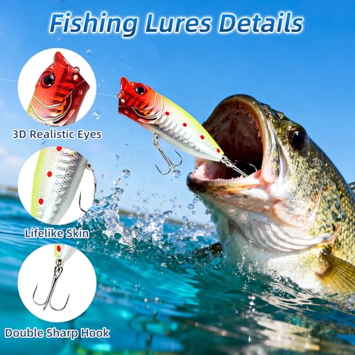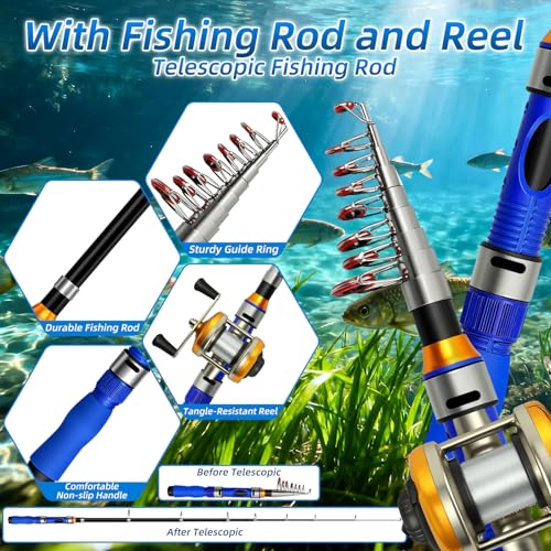 - Includes a fishing rod, cable reel, and 24 lures.