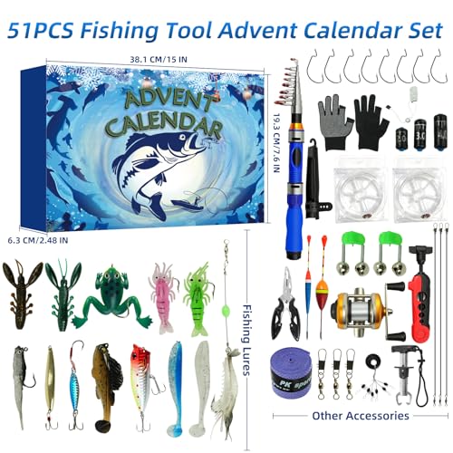 Ultimate 2025 fishing advent calendar with rod, cable reel, and 24 lures. A surprise gift for adult men, teens, and boys who love fishing.