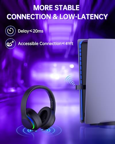 DGtune 2.4GHz wireless & Bluetooth 5.4 foldable gaming headset for PS5, PS4, Switch, PC. Features RGB lights, noise-canceling mic, 20ms low latency, 45H battery, Type-C.
