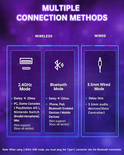 Step into the future of gaming audio with the DGtune Foldable Wireless Gaming Headset. Enjoy dual connectivity with 2.4GHz wireless for PS5, PS4, Switch, PC, and Bluetooth 5.4 for mobile devices. Experience stunning visuals with dynamic RGB lights and communicate flawlessly with the noise-canceling microphone. Ultra-low 20ms latency ensures your audio is always in sync, while the impressive 45-hour battery life keeps you in the game longer. Its foldable design and Type-C charging make it perfect for gamers on the go.