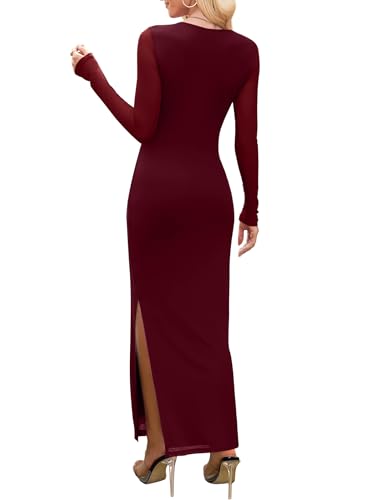 Stunning red long-sleeve bodycon maxi dress for women. Perfect for wedding guests, cocktail parties, and Christmas holidays. Elegant and flattering fit.