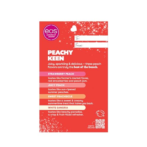 Discover the eos Peachy Keen Limited Edition Lip Balm 4-Pack. Features all-day moisture, shea butter, and delightful flavors for soft, healthy lips.