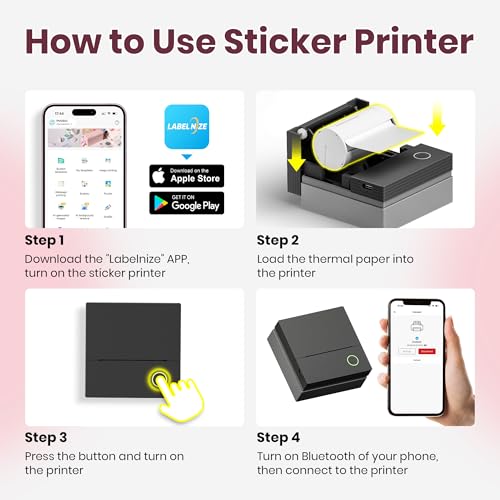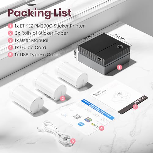 Create custom stickers with the ETIKEZ PM290C portable inkless Bluetooth printer. Ideal for notes, journals, DIY projects, and gifts. Includes 3 paper rolls for instant use.